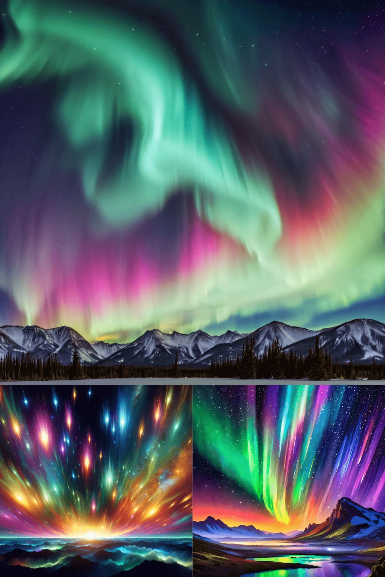 Image Prompt: "A night sky where stars emit bursts of colorful, luminescent light, creating a display similar to the aurora borealis