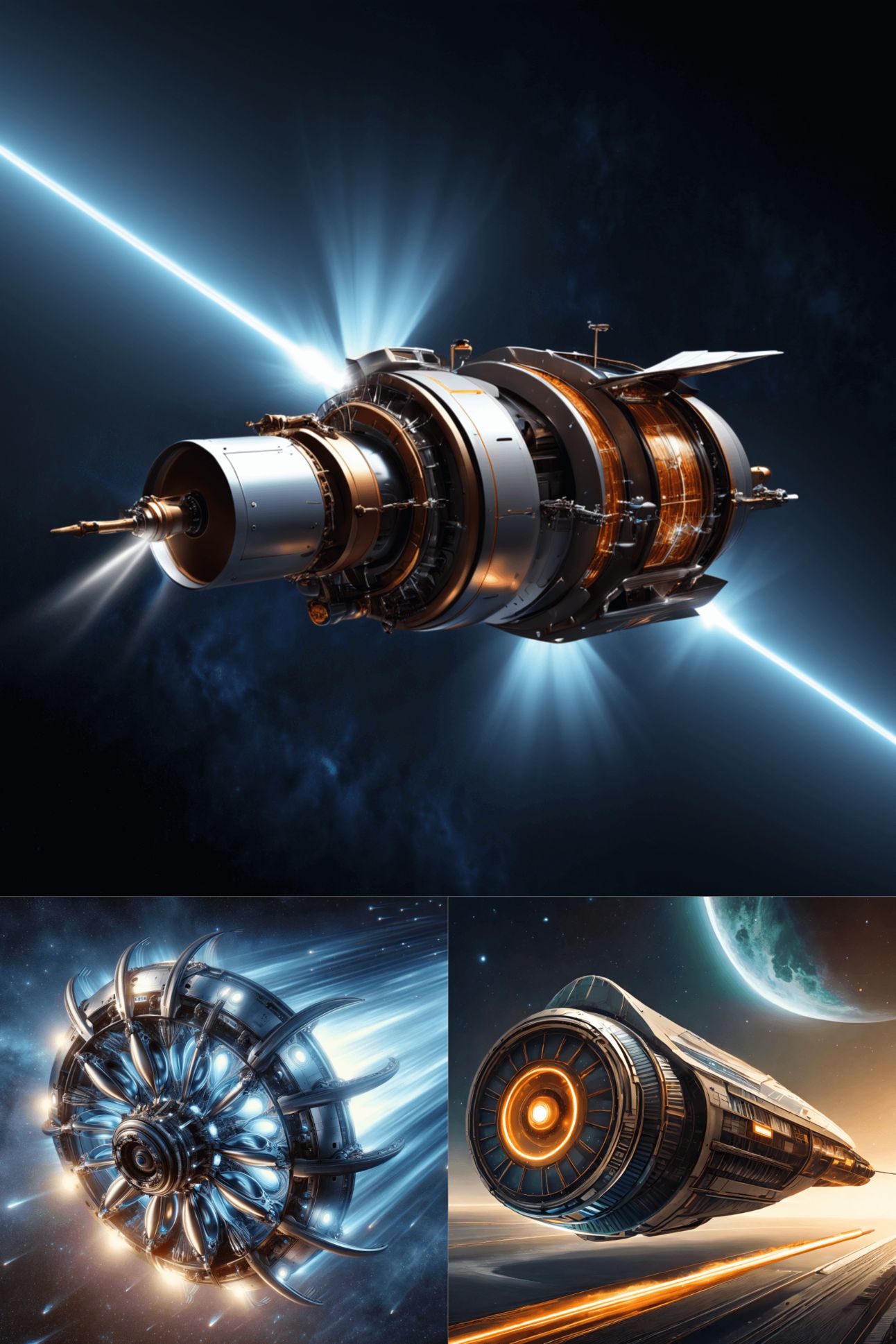 Image Prompt: "An advanced spacecraft propulsion system known as the Glimmerdrive, featuring sleek designs and emitting a soft, pulsating light
